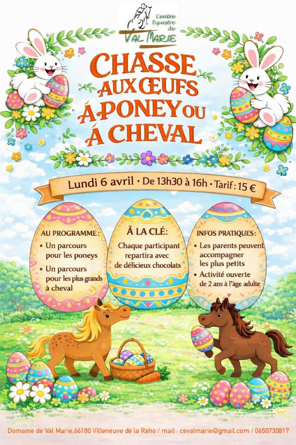 Ramassage des œufs de Pâques dans la forêt à cheval ou à poney.