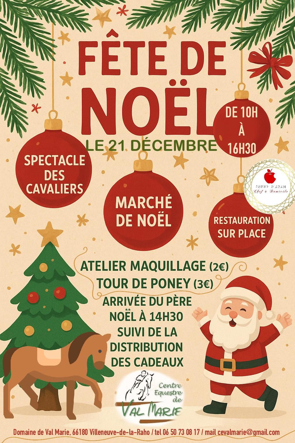 Grande Fête de Noël avec spectacle comprenant 80 cavaliers, tour de poney, venu du Père Noël. Restauration sur place avec la Cheffe La Pomme D'Adam.